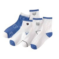 New High Quality Student Socks Sports White Women'S Men'S Mid Tube Socks Cute Pattern Blue Socks